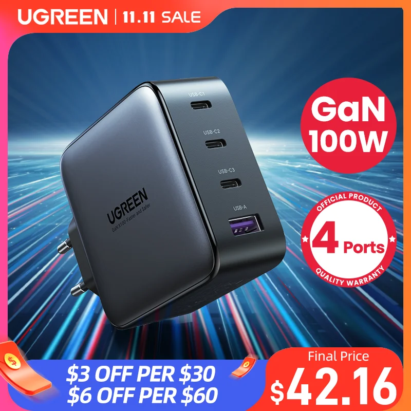 UGREEN USB Charger 100W GaN Charger for Macbook tablet Fast Charging for