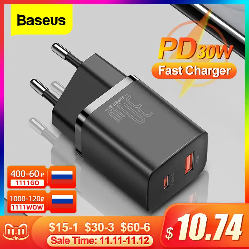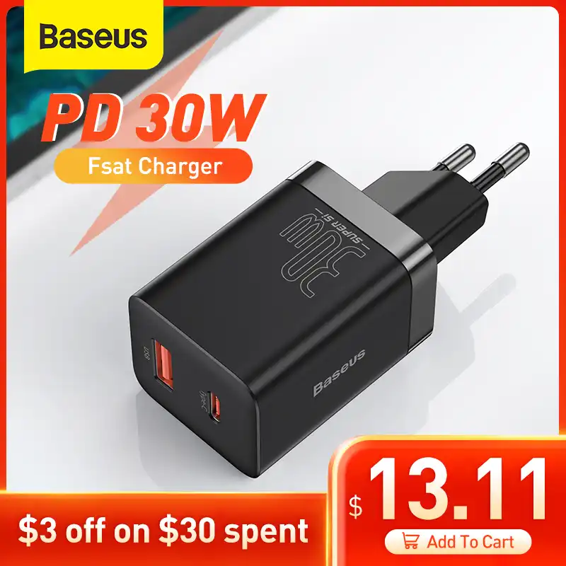 Baseus PD Charger 30W USB Type C Fast Charger QC3.0 USB C