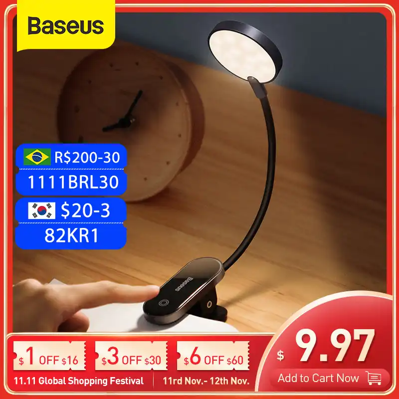 Baseus Book Light USB Led Rechargeable Mini Clip-On Desk Lamp Light Flexible