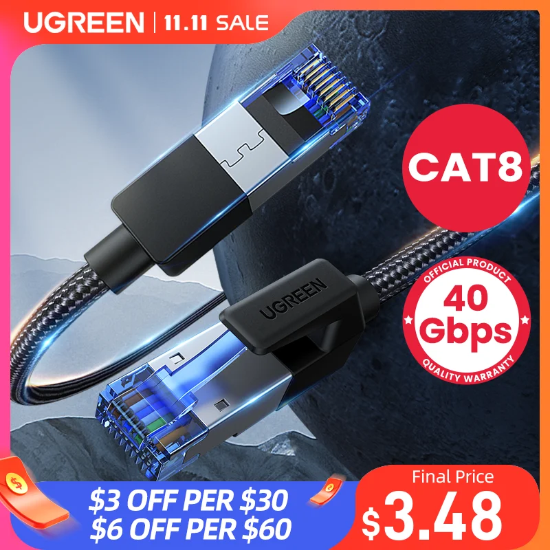 UGREEN CAT 8 Ethernet Cable CAT8 40Gbps 2000MHz Networking Nylon Braided Internet
