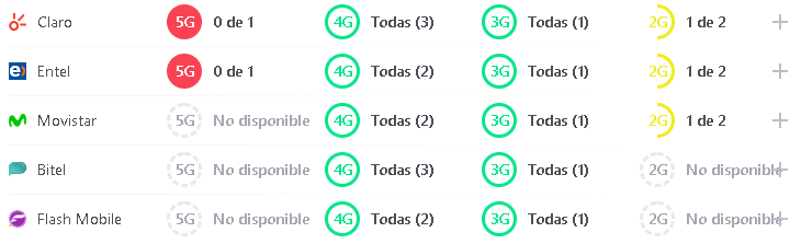 - Redes 4G (LTE): 700-800-850-900-1700-1800-1900-2100-2600