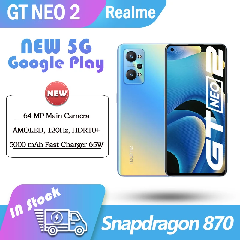 Original realme GT NEO 2 5G smartphone Snapdragon 870 64Mp main Camera