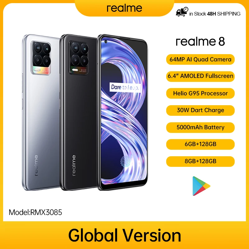 Global Version realme 8 6GB/8GB 128GB Mobile Phone Helio G95 6.44″ AMOLED