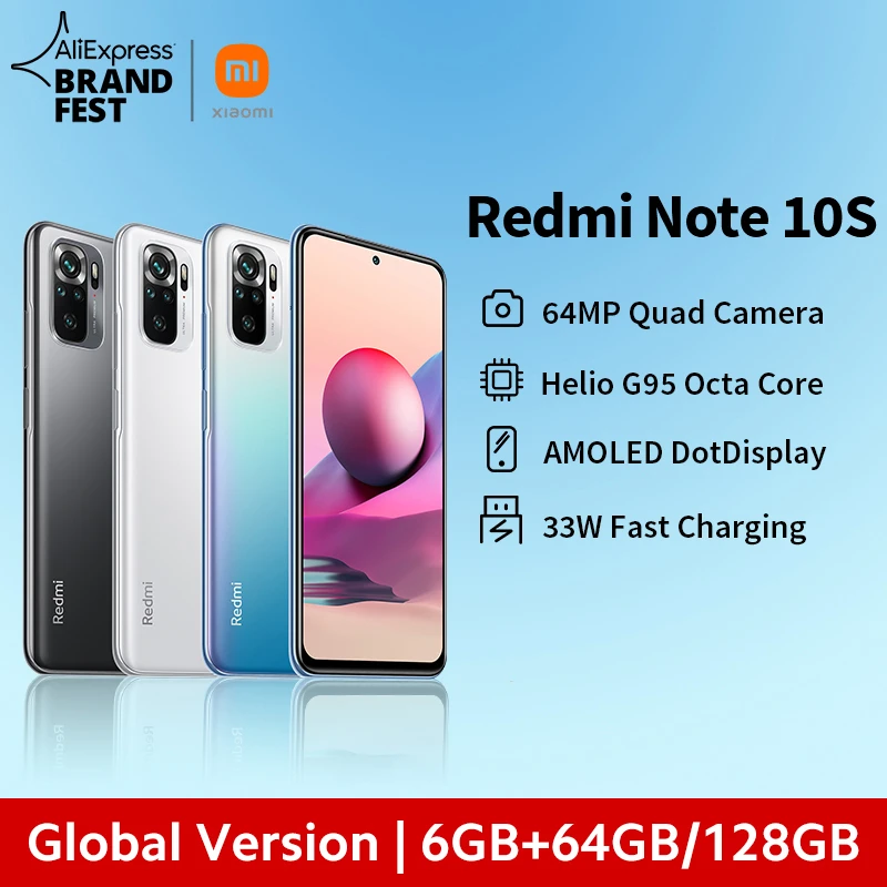 Global Version Xiaomi Redmi Note 10S Mobile 6GB 64GB /128GB G95 Octa