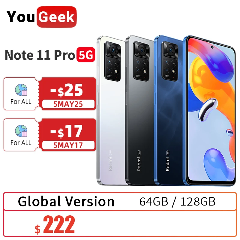 Xiaomi Redmi Note 11 Pro 5G Global Version Cellphone 64GB/128GB Snapdragon 695