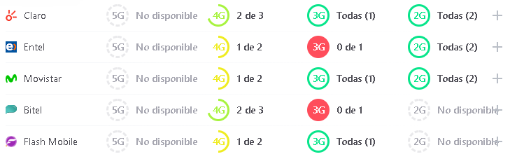 - Redes 2G (GSM): 850-900-1800-1900 MHz