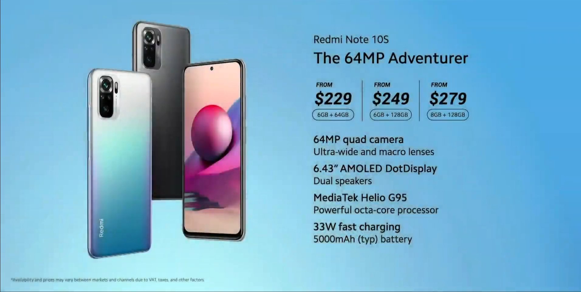 Redmi Note 10S, 6GB + 128GB, $ 249