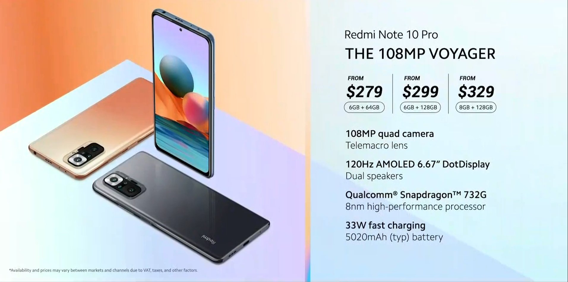 Redmi Note 10 Pro 8GB + 128GB, $ 329