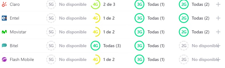 - Redes 4G (LTE): 700-800-850-900-1700-1800-1900-2100-2600 MHz