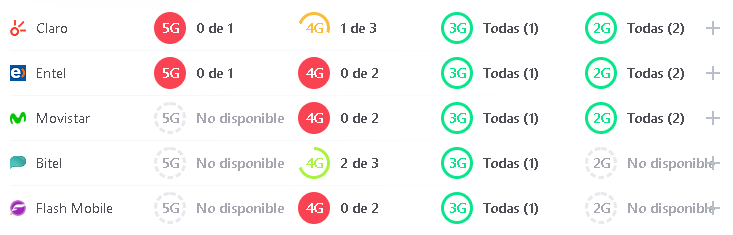 - Redes 4G (LTE): 800-900-1800-2100-2600 MHz